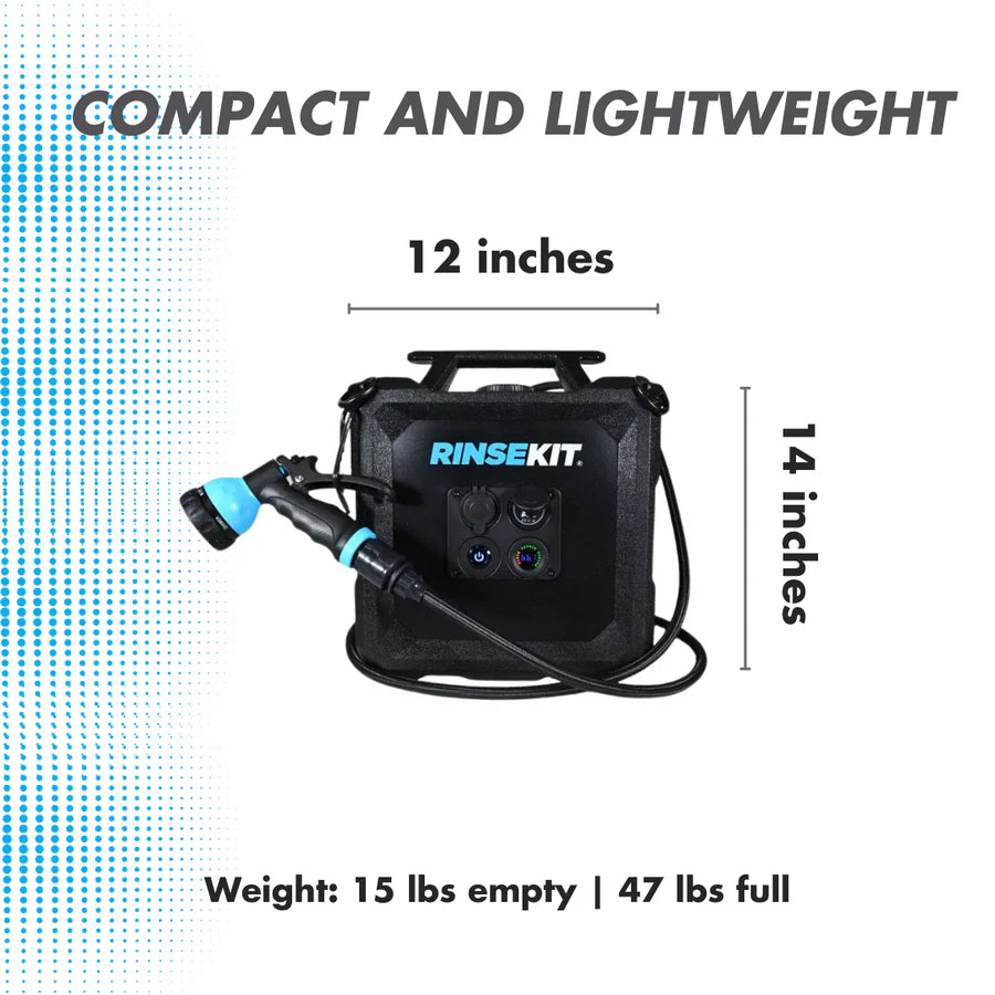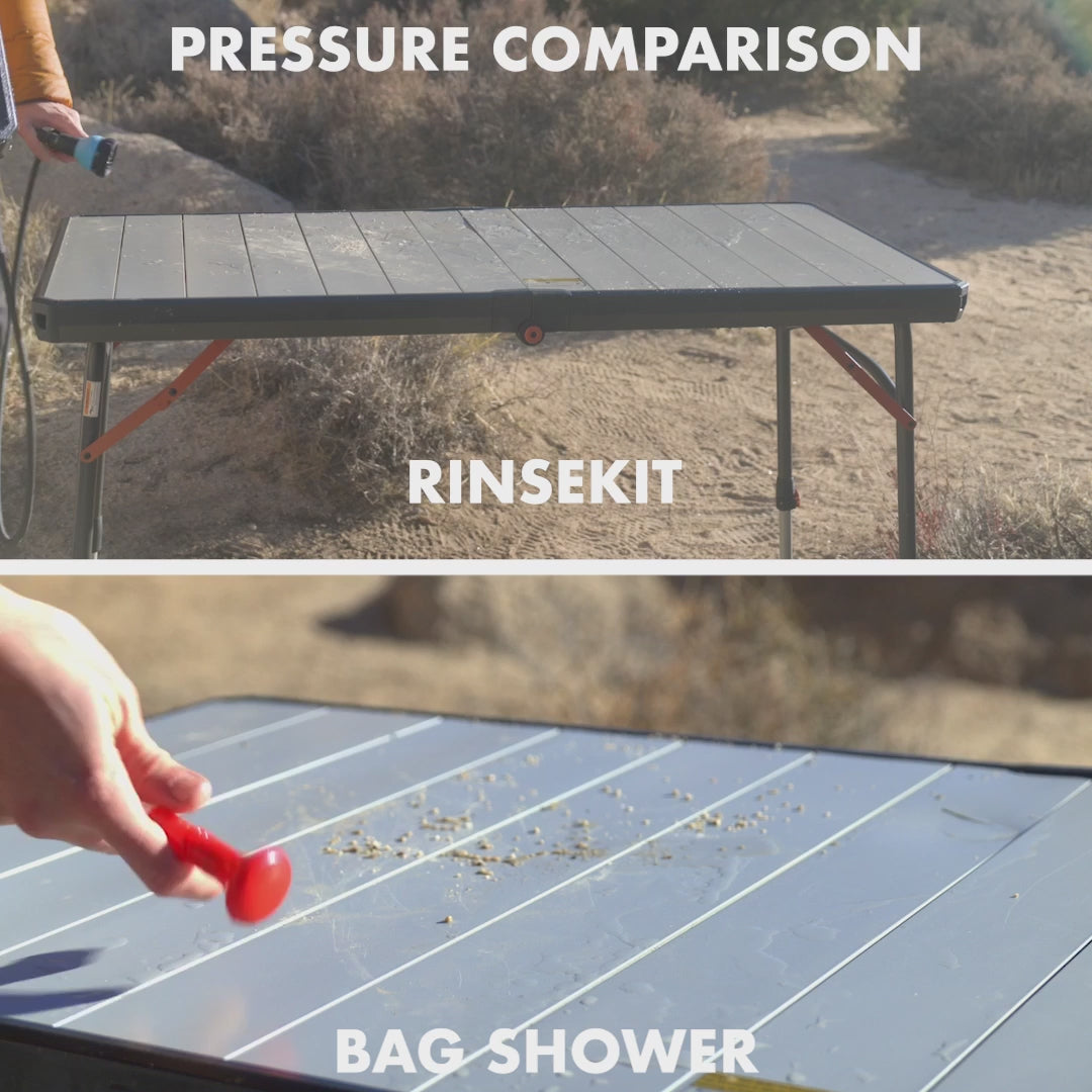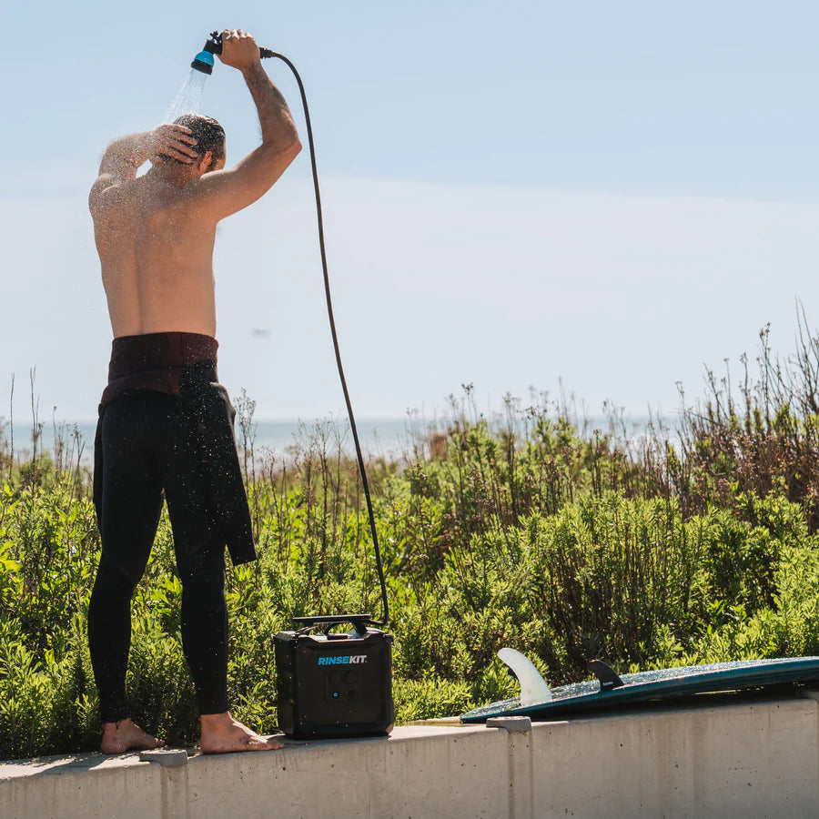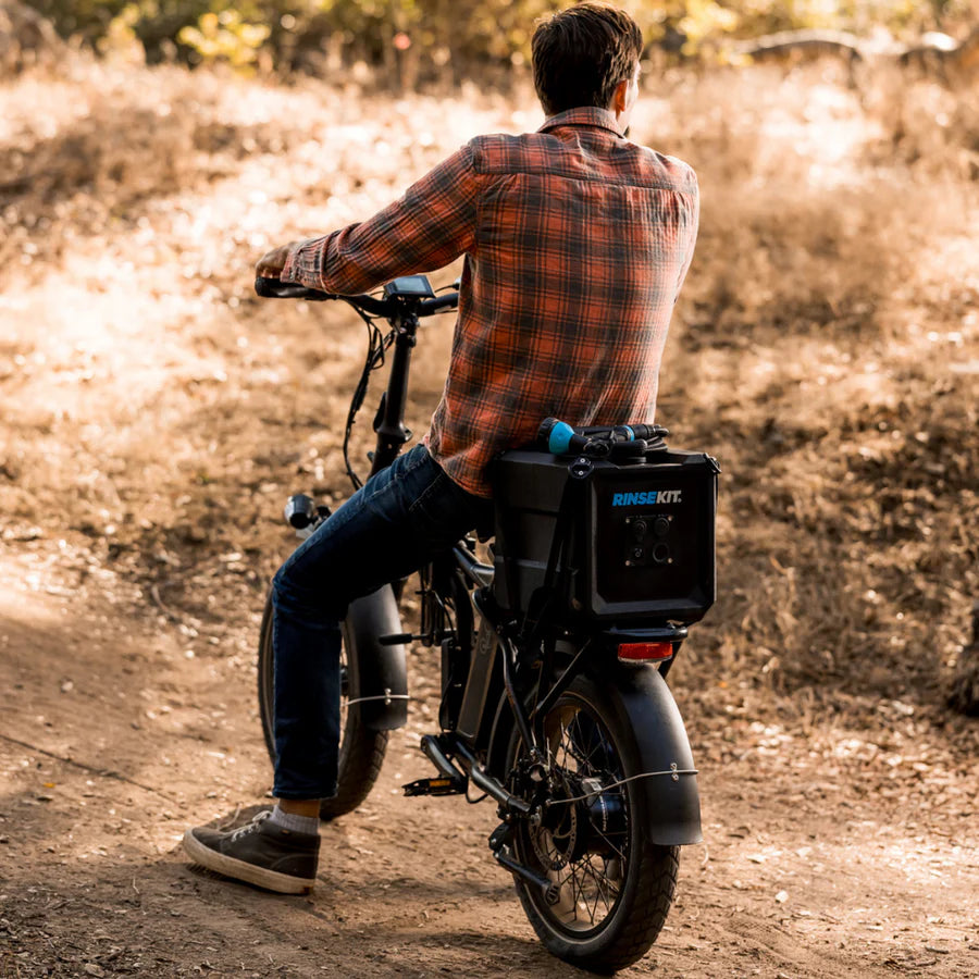 The RinseKit Cube is our 4-gallon Portable Shower that empowers you to clean up wherever adventure takes you. Equipped with battery-powered pressurization, the Cube boasts a consistent high-pressure spray that can blast off the toughest dirt and grime. It's super easy to use - simply pour in water, press the power button and spray. It is built tough with military-grade materials, and is equipped with stainless steel tie-downs for when the road gets rough. The Cube is the strongest, most durable, and intuitive portable shower on the market - made for keeping you clean no matter how far out you go.