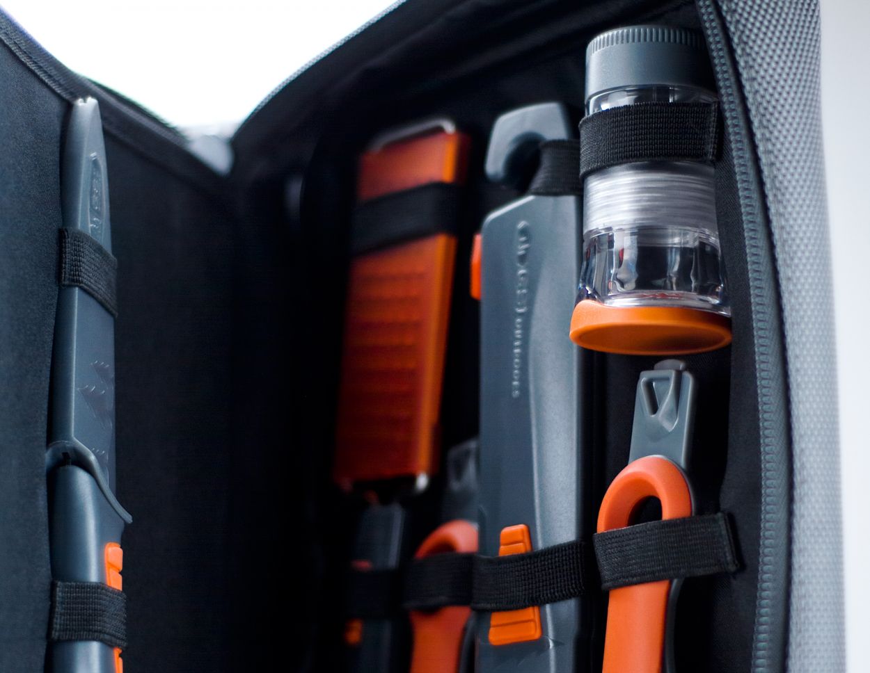 | Includes | Mini Cheese Grater, Collapsible Whisk, Pivot Spoon, Pivot Spatula, Utility Knife, 12 pc. Cutlery Set, Spicer, 2 Condiment Containers, Cutting Board, Scrubber, Camp Towel, Ballistic Nylon Case |