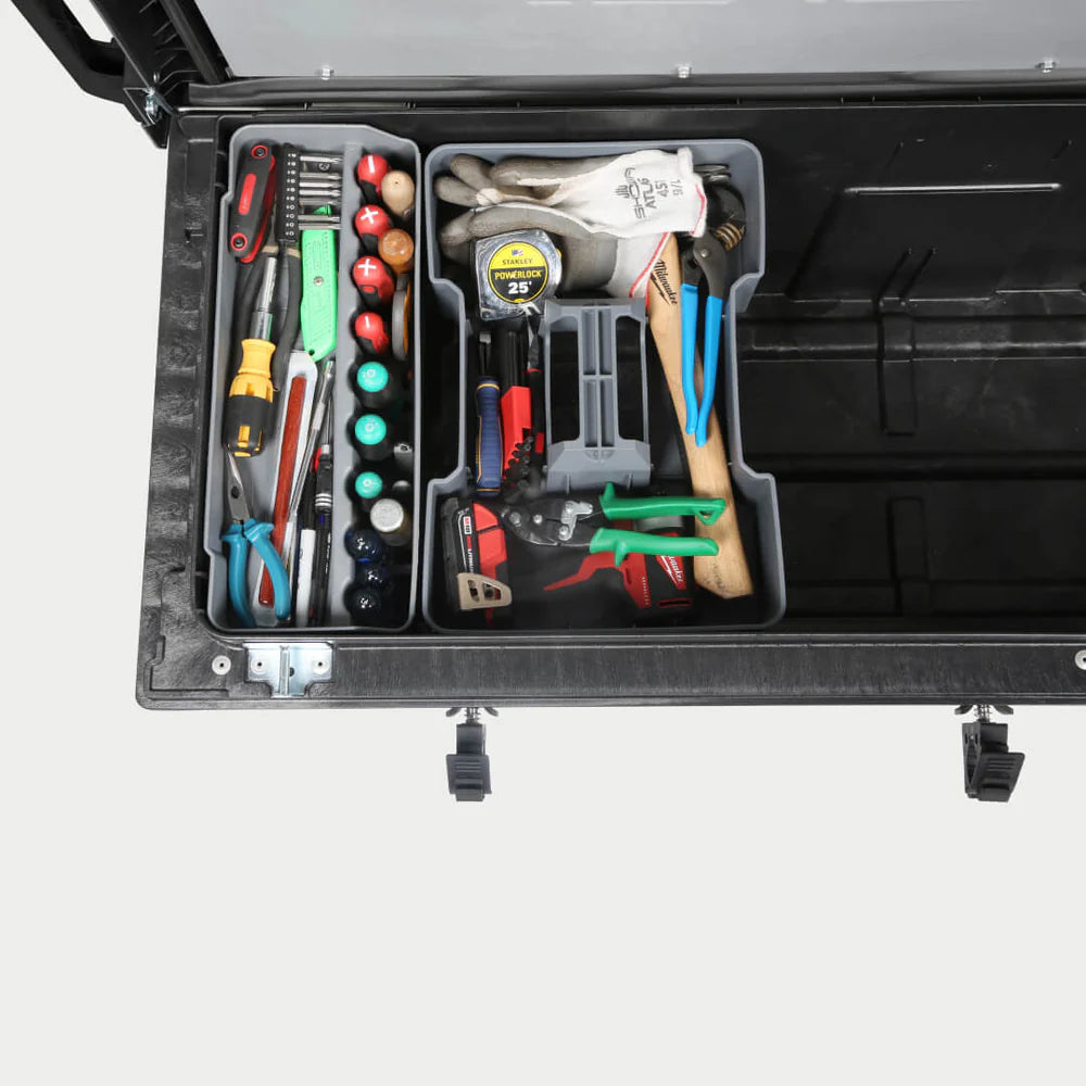 DECKED Tool Box is the only toolbox on the market that is easy to access, doesn't ding, dent or rust, waterproof and is secure and lockable. Organize your tools and gear with a DECKED truck bed toolbox.